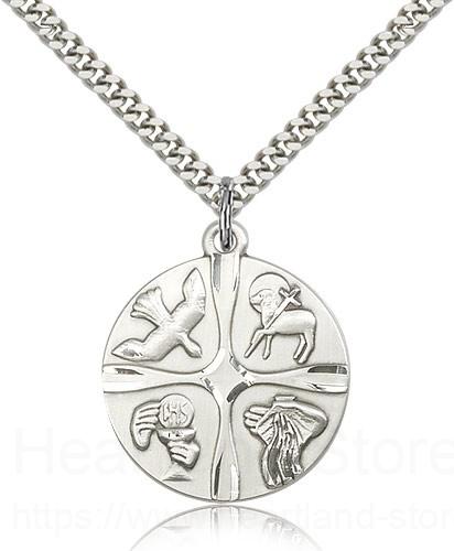 This Christian Life Medal is paired with a 24 inch stainless steel heavy curb chain as pictured. All medals are gift boxed in a light blue velvet jewelry box ready for gift giving.