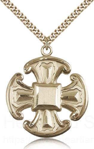 This Cross Pendant is paired with a 24 inch stainless steel gold-tone heavy curb chain as pictured. All medals are gift boxed in a light blue velvet jewelry box ready for gift giving.