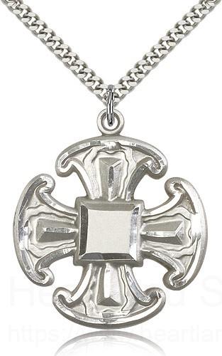 Cross Pendant is paired with a 24 inch stainless steel heavy curb chain as pictured. All medals are gift boxed in a light blue velvet jewelry box ready for gift giving.