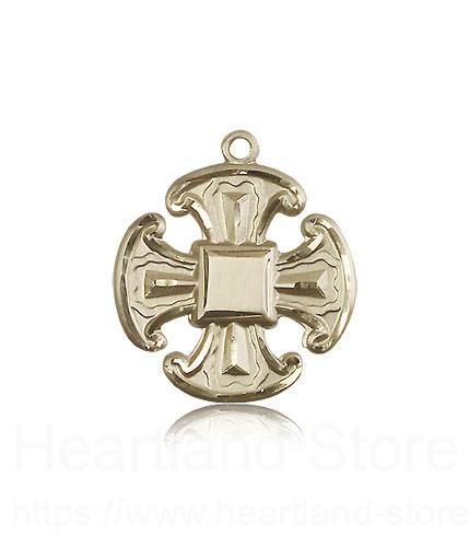 This Cross Pendant is made of 14 Karat Gold. The jewelry pendant is sold as pictured and does not come with a chain. All medals are gift boxed in a light blue velvet jewelry box ready for gift giving.