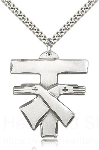 This Franciscan Cross Pendant is paired with a 24 inch stainless steel heavy curb chain as pictured. All medals are gift boxed in a light blue velvet jewelry box ready for gift giving.