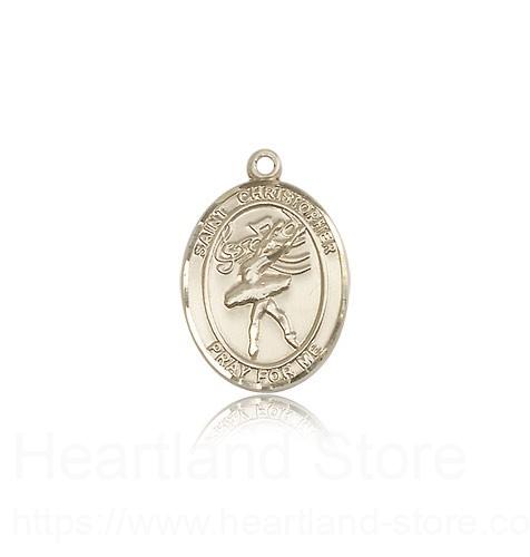 This St Christopher Dance Pendant is made of 14 Karat Gold and is approximately the size of a nickel. The jewelry pendant is sold individually and does not come with a chain. All medals are gift boxed in a beautiful blue velvet hinged jewelry gift box.
