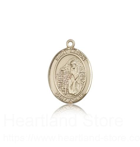 This St. Aaron Pendant is made of 14 Karat Gold and is approximately the size of a nickel. The jewelry pendant is sold individually and does not come with a chain. All medals are gift boxed in a beautiful blue velvet hinged jewelry gift box.