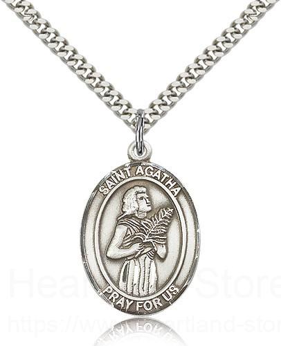 About this Men's Sterling Silver Saint Agatha Oval Medal + 24" 2.4mm Rhodium Plate Chain + Clasp