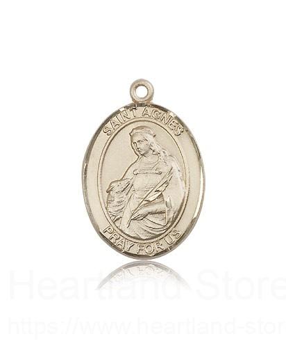 This St. Agnes of Rome Pendant is made of 14 Karat Gold and is approximately the size of a quarter. The jewelry pendant is sold individually and does not come with a chain. All medals are gift boxed in a beautiful blue velvet hinged jewelry gift box.
