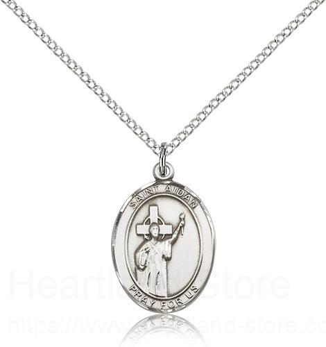 This St. Aidan of Lindesfarne Pendant is made of sterling silver and is approximately the size of a nickel. The jewelry pendant is paired with an 18 inch sterling silver light curb chain as pictured. All medals are gift boxed in a beautiful blue velvet hinged jewelry gift box.