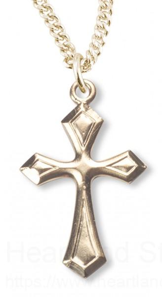 About this Women's 14kt Gold Plated Beveled Edge Diamond Pattern Cross Necklace + 18 Inch Gold Plated Chain & Clasp