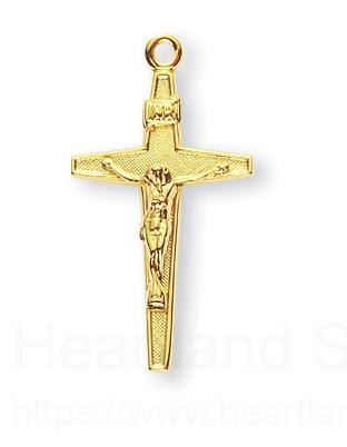 About this Crucifix Necklace with Patterned Inside, 16 Karat Gold Over Sterling Silver with Chain