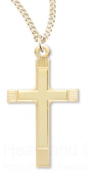 About this Women's 14kt Gold Over Sterling Silver Stripe Tips Squared Edge Cross + 18 Inch Gold Plated Chain & Clasp
