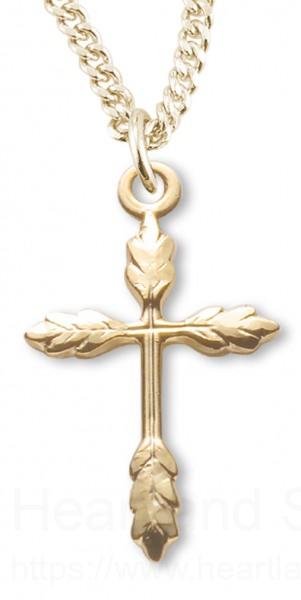 About this Women's 14kt Gold Over Sterling Silver Cross Necklace Wheat Sheaf Tips + 18 Inch Gold Plated Chain & Clasp