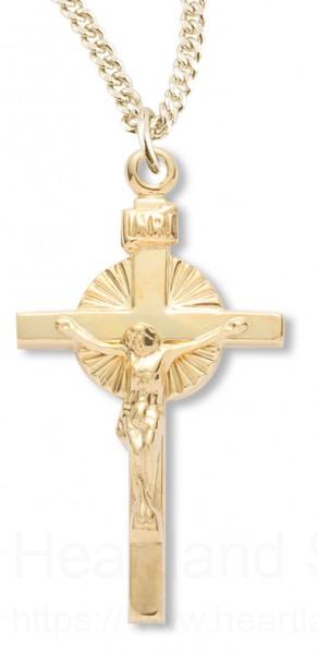 About this Women's 14kt Gold Over Sterling Silver Sunburst Center Crucifix Pendant + 18 Inch Gold Plated Chain & Clasp