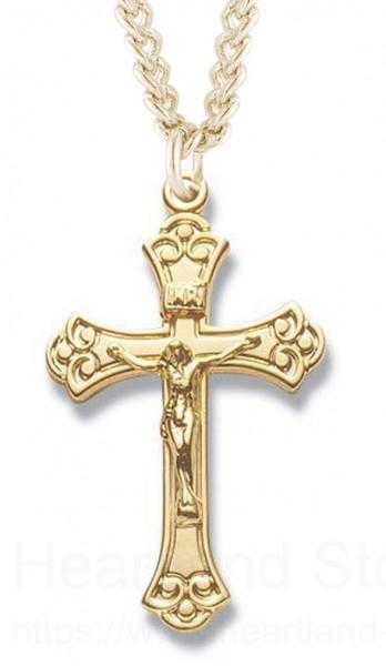 About this Women's 14kt Gold Over Sterling Silver Scroll Tip Crucifix + 18 Inch Gold Plated Chain & Clasp