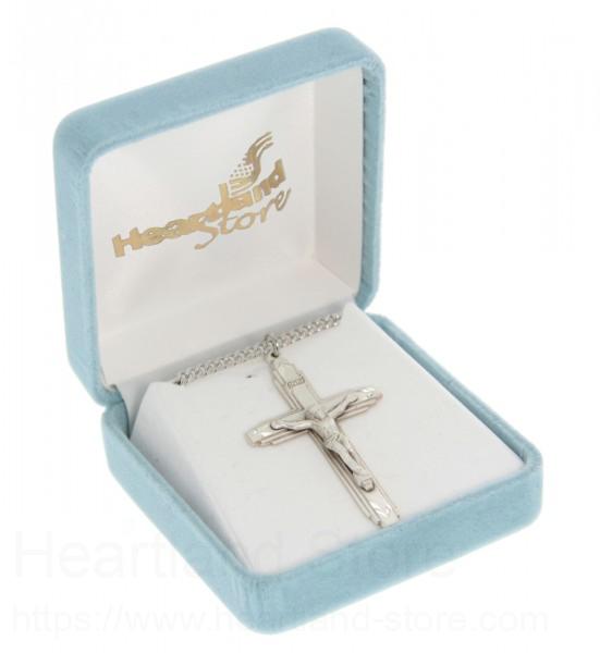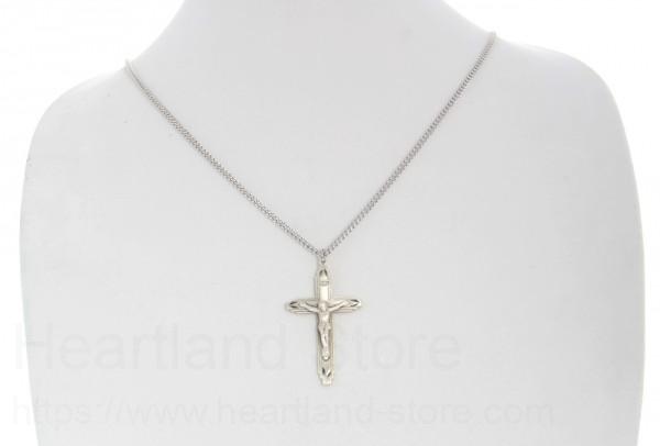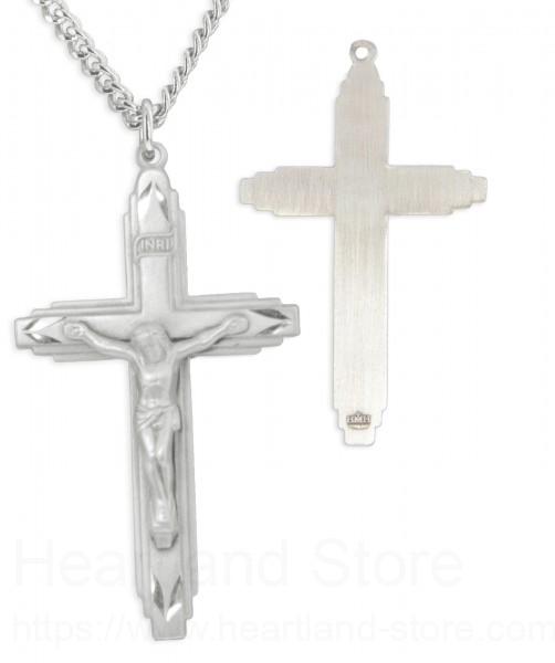 About this Men's Large Sterling Silver Crucifix Pendant + 24" 3mm Stainless Steel Endless Chain