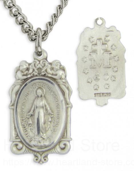 Women's Sterling Silver Miraculous Necklace with Angels with Chain Options + 18" 2.2mm Stainless Steel Chain + Clasp