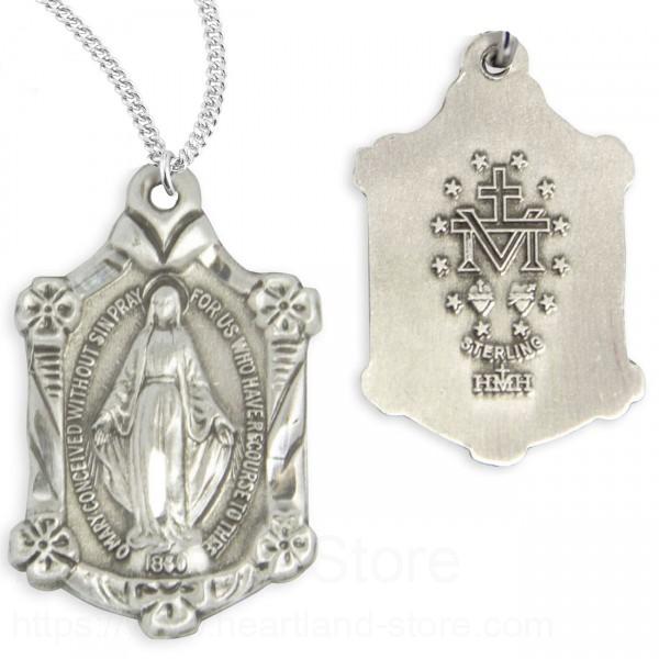 Women's Small Sterling Silver Miraculous Necklace Baroque Style with Chain Options