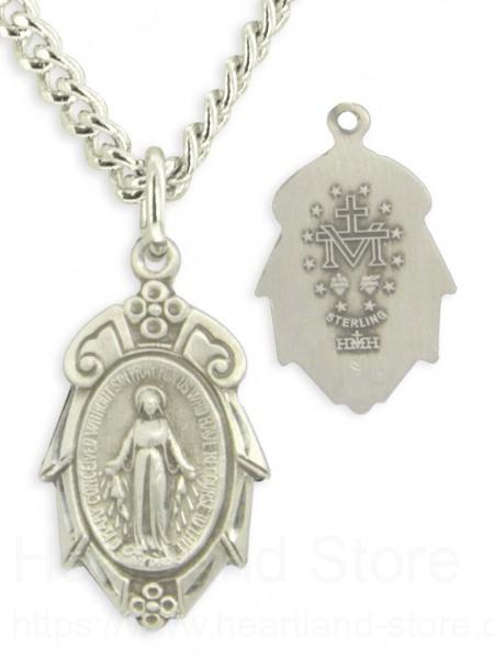 Women's Sterling Silver Floral Tip Jagged Edge Miraculous Necklace with Chain Options + 18" 2.2mm Stainless Steel Chain + Clasp