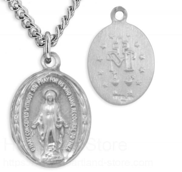 Dainty Women's Oval Sterling Silver Miraculous Necklace with Chain Options + 18" 2.2mm Stainless Steel Chain + Clasp