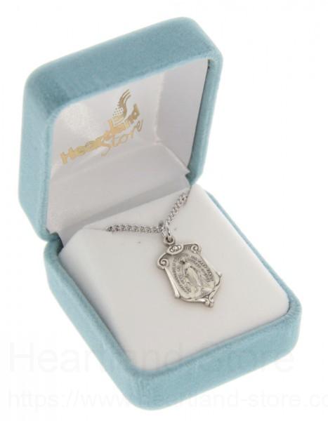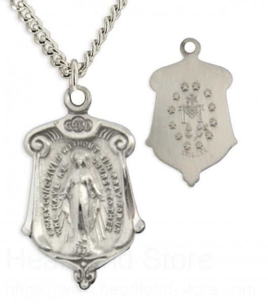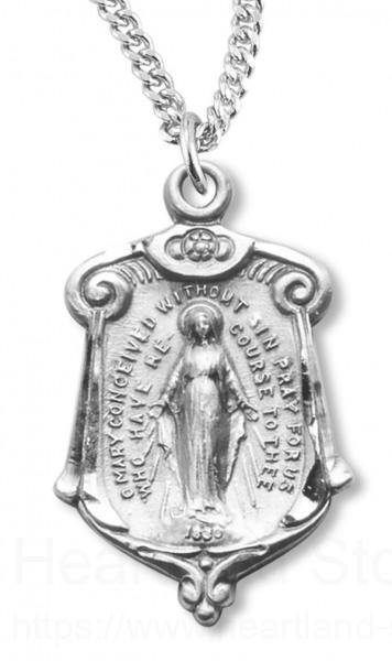 Women's Sterling Silver Miraculous Necklace Scroll Top with Chain Options + 18" 2.2mm Stainless Steel Chain + Clasp