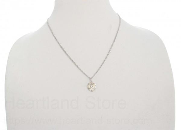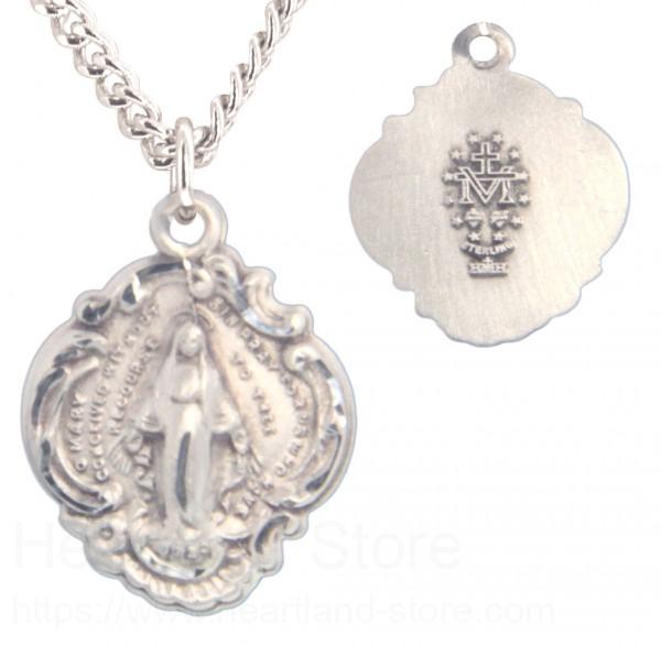 About this Girl's Sterling Silver Baroque Style Miraculous Necklace with Chain Options + 18" 2.2mm Stainless Steel Chain + Clasp