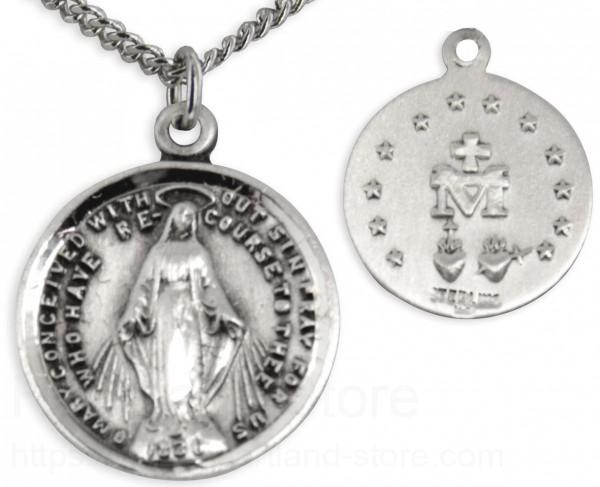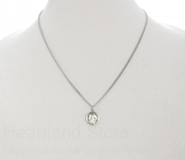 About this Women's Round Sterling Silver Miraculous Necklace with Thin Border with Chain Options + 18" 2.2mm Stainless Steel Chain + Clasp