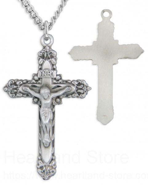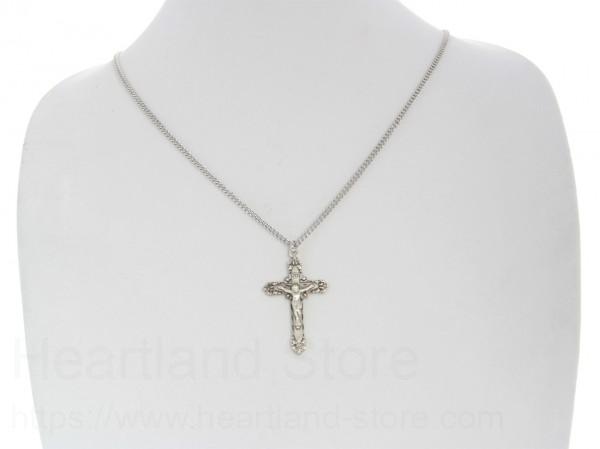 About this Men's Sterling Silver Filigree Cut Crucifix Necklace with Chain Options + 24" 3mm Stainless Steel Endless Chain