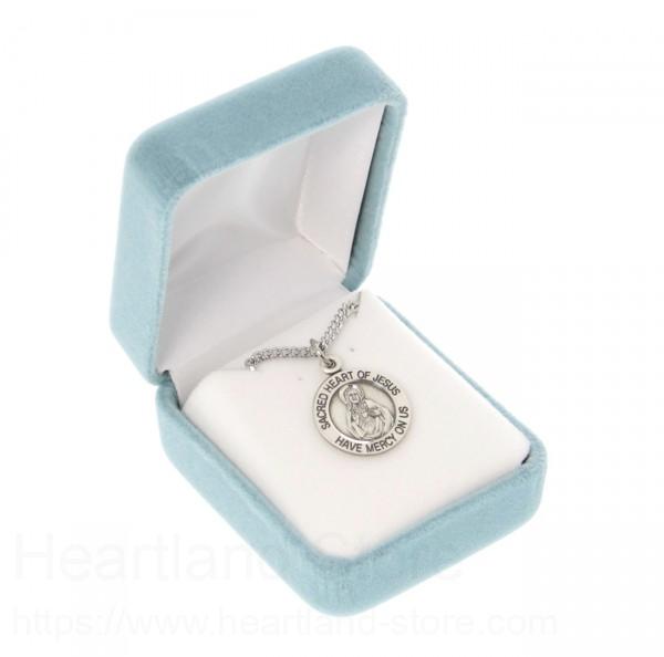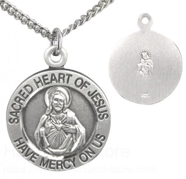 About this Womens Sacred Heart of Jesus Necklace Round, Sterling Silver with Chain Options + 18" 2.2mm Stainless Steel Chain + Clasp