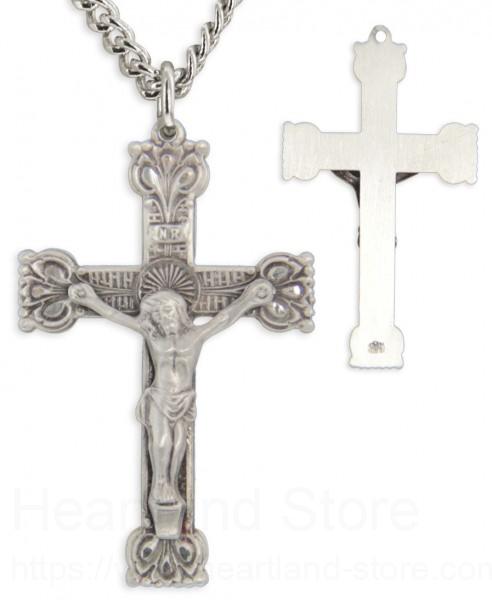 About this Men's Sterling Silver Crucifix Necklace with Crown Tips with Chain Options + 24" 3mm Stainless Steel Endless Chain