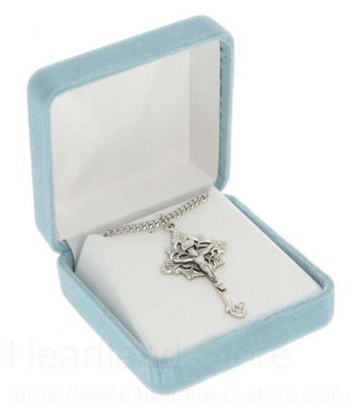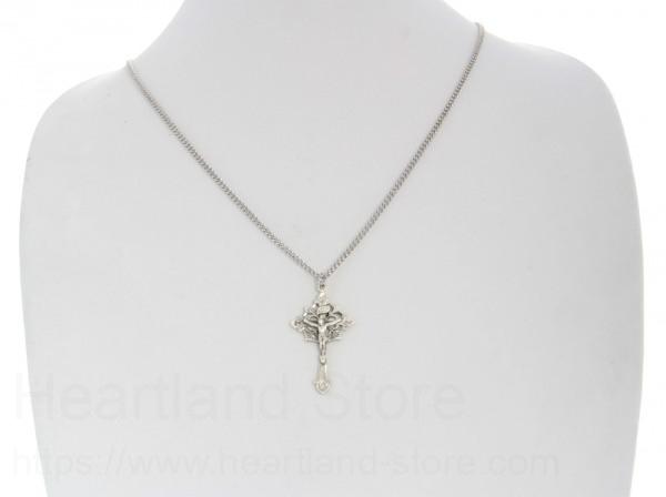 About this Men's Sterling Silver Fancy Crucifix Necklace Fleur-de-lis Points with Chain Options + 24" 3mm Stainless Steel Endless Chain