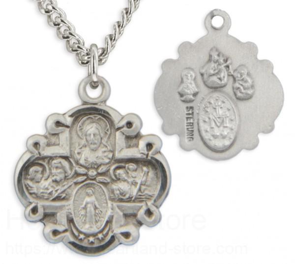 Women's Sterling Silver 4 Way Cross Necklace Wide Edges with Chain Options + 18" 2.2mm Stainless Steel Chain + Clasp