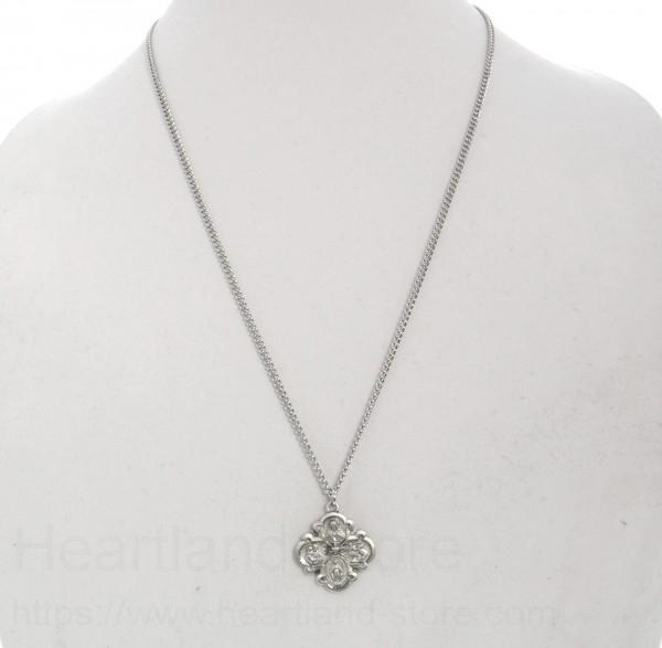 A rounded wide edge 4-Way pendant has all the classic markings including a Heart center image. This can be worn by both men and women due to its size. Not too big and not too small.