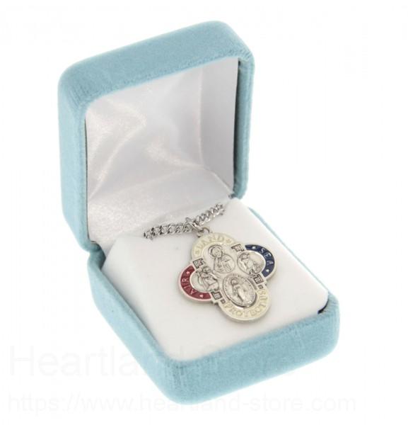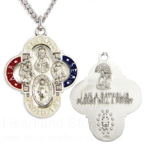 Air,Land and Sea 4 Way pendant has red white and blue enamel accents. The pendant is double-sided and with the colored enamel is unique and gorgeous!
