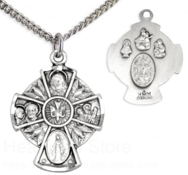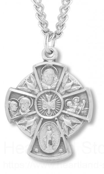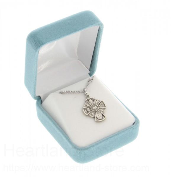 A medium sized women's or youth 4 Way Cross Pendant. The highlight of this pendant is the use of the dove symbol on each of the 4 cross corners.
