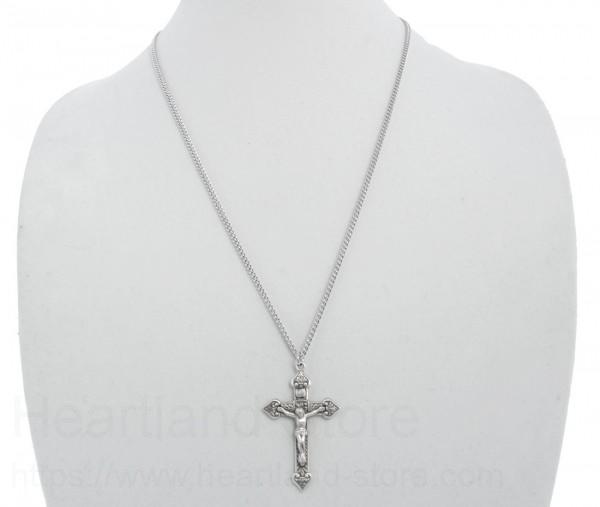 About this Large Men's Sterling Silver Antiqued Crucifix Necklace + 24" 3mm Stainless Steel Endless Chain
