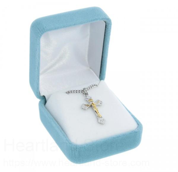 About this Women's Sterling Silver and Gold Filled Crucifix Necklace Wide Etched Tips with Chain Options