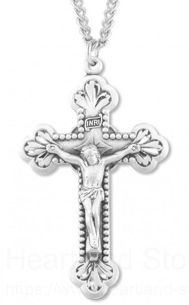 About this Men's Sterling Silver Baroque Style Crucifix Necklace with Chain Options + 24" 3mm Stainless Steel Endless Chain