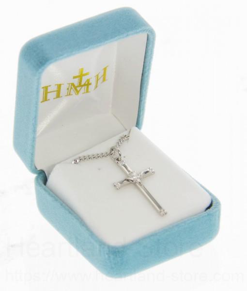 A brilliant high polished Cross is styled with with beaded ends and a inspiring Holy Spirit Dove in the center.