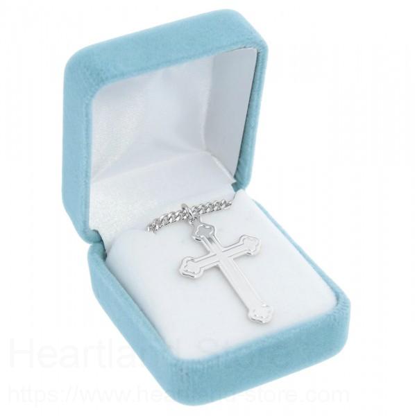 About this Men's Sterling Silver High Polish Clover Leaf Tip Cross Necklace with Chain Options + 24" 3mm Stainless Steel Endless Chain