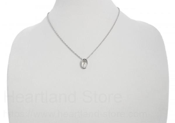 About this Women's Sterling Silver Oval Frame Cut Out Miraculous Necklace with Chain Options + 18" 2.2mm Stainless Steel Chain + Clasp