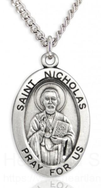 About this Men's St. Nicholas Necklace Oval Sterling Silver with Chain Options + 24" 3mm Stainless Steel Endless Chain