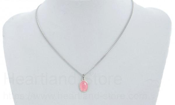 This sweet looking pink Miraculous Pendant is made of Sterling Silver and has a pink epoxy over the top.