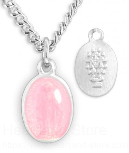 About this Child's Pink Miraculous Pendant, Sterling Silver with Chain