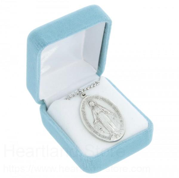 A Miraculous necklace with superb detail! Oval in shape with a smooth satin finish this Miraculous Pendant is nicely sized and is paired with a 27" chain.