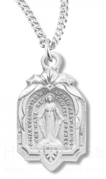 Women's Sterling Silver Ribbon Accent Miraculous Necklace with Chain Options + 18" 2.2mm Stainless Steel Chain + Clasp