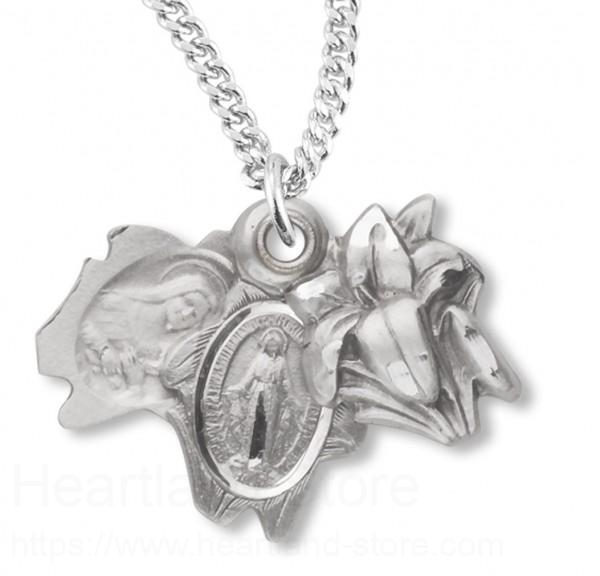 This wonderful triple slider Pendant contains a wonderful Miraculous, St. Therese (Jesus' Little Flower) and flower shaped Lily sliders.
