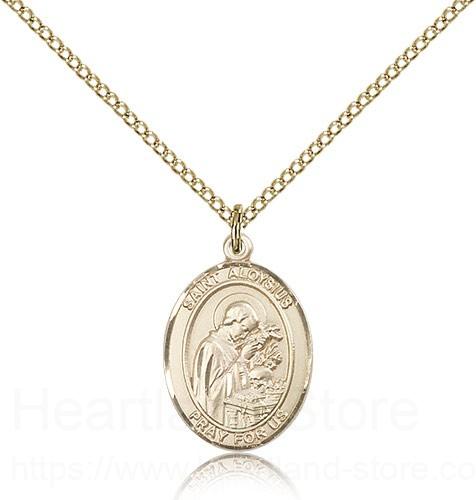 This St. Aloysius Gonzaga Pendant is made of gold filled and is approximately the size of a nickel. The jewelry pendant is paired with an 18 inch gold filled light curb chain as pictured. All medals are gift boxed in a beautiful blue velvet hinged jewelry gift box.