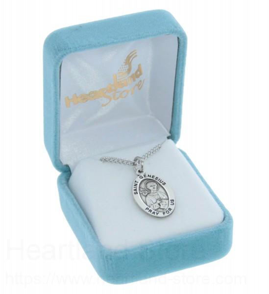 About this Boy's St. Genesius Necklace Oval Sterling Silver with Chain