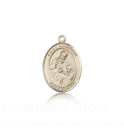 This St. Ambrose Pendant is made of 14 Karat Gold and is approximately the size of a nickel. The jewelry pendant is sold individually and does not come with a chain. All medals are gift boxed in a beautiful blue velvet hinged jewelry gift box.