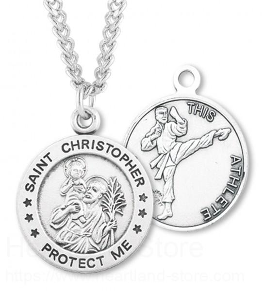 About this Round Boy's St. Christopher Martial Arts Necklace With Chain + 24" 3mm Stainless Steel Endless Chain