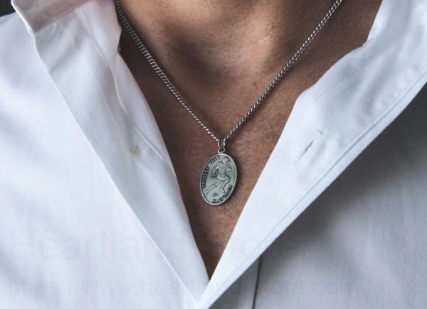 About this Oval Men's St. Christopher Football Necklace With Chain + 24" 3mm Stainless Steel Endless Chain