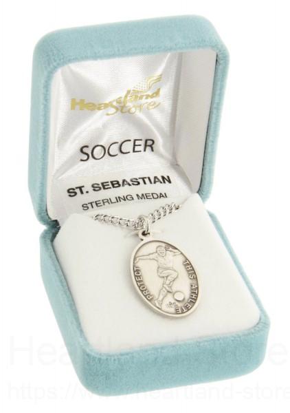 About this Men's Sterling Silver Saint Sebastian Soccer Oval Necklace + 24" 3mm Stainless Steel Endless Chain